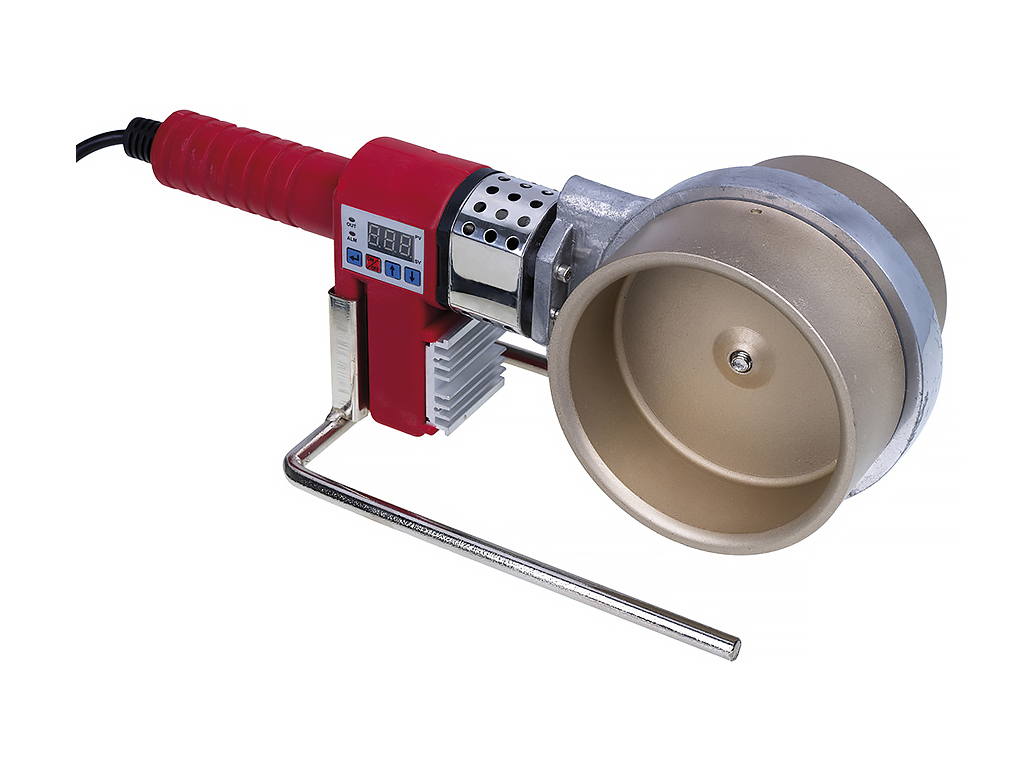Сварочный аппарат с электронной регулировкой температуры для пластиковых труб и фасонных деталей из ПЭ, ПП, ПБ и ПВДХ.